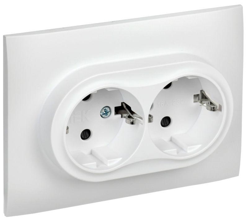 Розетка 2-м SKANDY 16А с заземл. защ. шторки в сборе SK-R07W арктич. бел. IEK SK-R24-16-K01-F