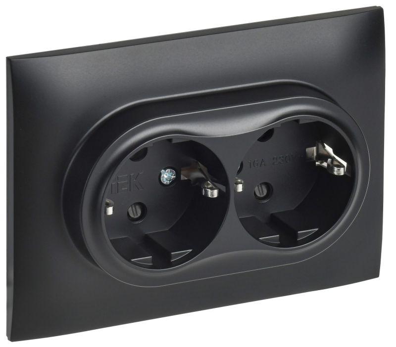 Розетка 2-м SKANDY 16А с заземл. защ. шторки в сборе SK-R07Bl черн. IEK SK-R24-16-K02-F