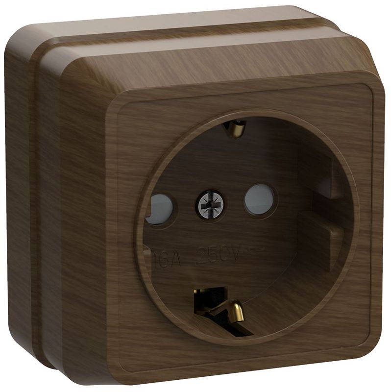 Розетка 1-м ОП Октава РСш20-3-ОД 16А IP20 с заземл. защ. шторки дуб GENERICA ERO14-K04-16-DC