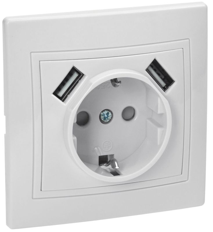 Розетка 1-м СП Кварта РЮш10-1-КБ 16А USBх2 2.1А с заземл. бел. GENERICA KV-R14-16-U2-K01