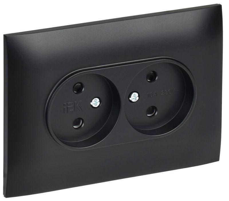 Розетка 2-м SKANDY 10А без заземл. защ. шторки в сборе SK-R09Bl черн. IEK SK-R23-10-K02-F
