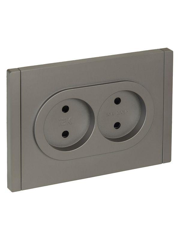 Розетка 2-м СП FORTE&PIANO FP525 10А без заземл. защ. шторки безвинт. крепл. сталь IEK FP-R23-10-1-K46
