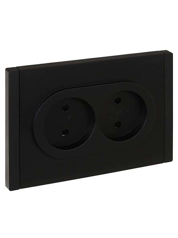 Розетка 2-м СП FORTE&PIANO FP125 10А без заземл. защ. шторки безвинт. крепл. черн. IEK FP-R23-10-1-K02