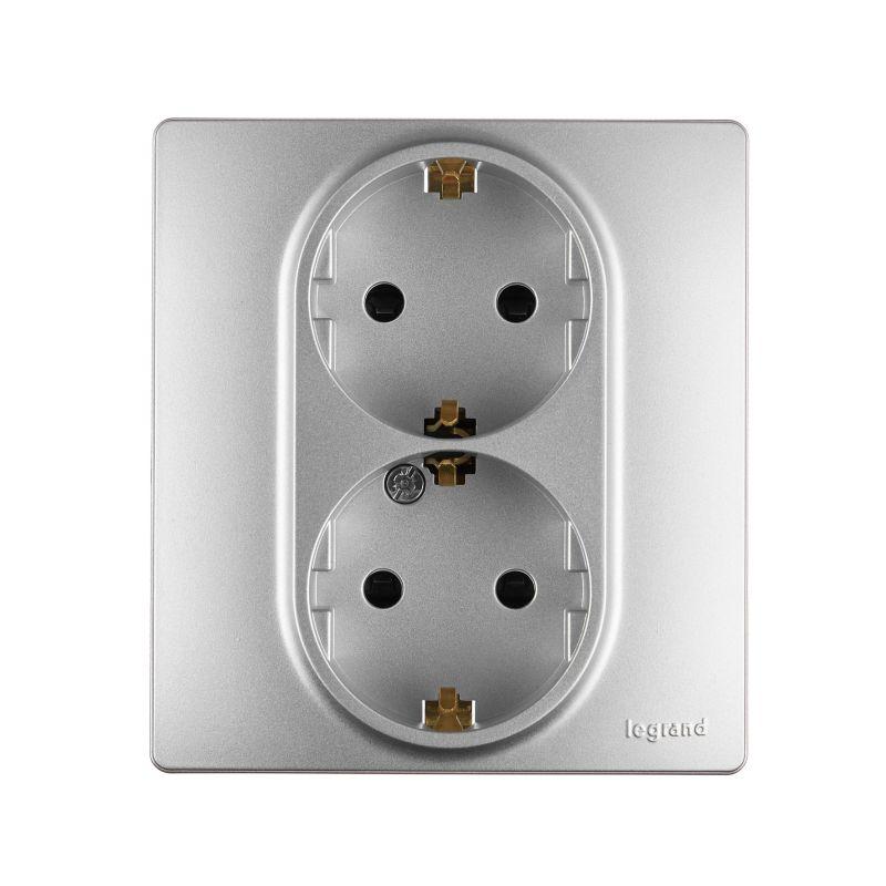 Розетка 2-м СП Etika 16А IP31 250В 2х2P+E с заземл. защ. шторки немецк. стандарт безвинт. клеммы алюм. IEK 672433