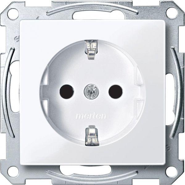 Механизм розетки 1-м СП Merten 16А IP20 с заземл. защ. шторки QF SM активно бел. SchE MTN2300-0325