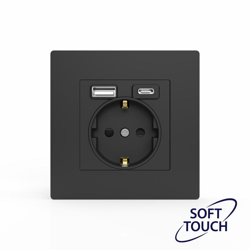 Розетка 1-м СП Pixel IP20 с заземл. с 2-мя заряд. устр. USB тип A+C механизм карбон TOKOV ELECTRIC TKE-PX-R1U2AC-C14