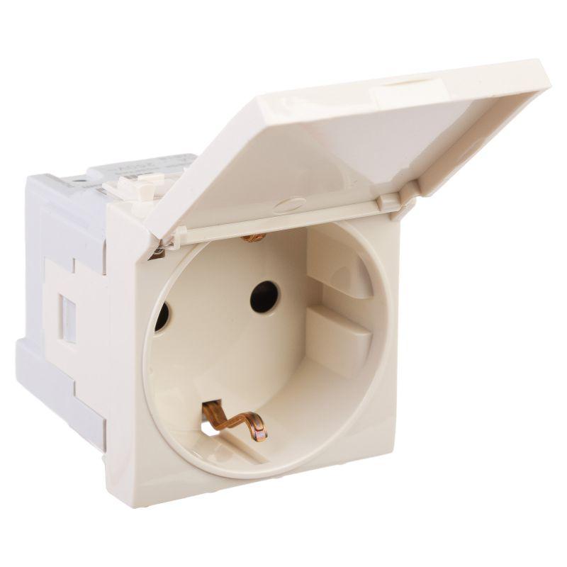 Розетка 1-м 2мод. Avanti "Ванильная дымка" 16А IP41 2P+E защ. шторки с крышкой беж. DKC 4405012