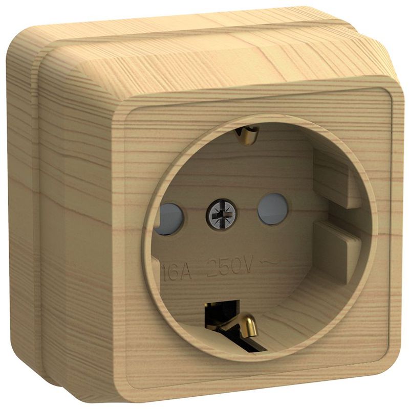 Розетка 1-м ОП Октава РСш20-3-ОС 16А IP20 с заземл. защ. шторки сосна GENERICA ERO14-K03-16-DC