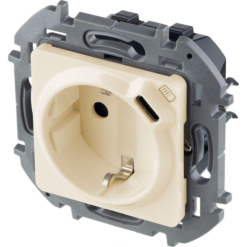 Розетка 1-м СП Inspiria 16А IP20 250В 2P+E немецк. стандарт с заряд. устройством USB тип C 1.5А 5В механизм сл. кость IEK 673771
