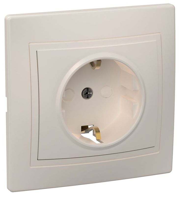 Розетка 1-м СП Кварта РСш10-3-Км 16А IP20 с заземл. защ. шторки керамика крем. GENERICA ERK14-K33-16-K