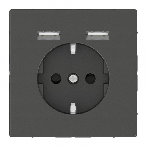 Розетка 1-м СП Merten D-Life 16А IP20 Schuko с 2-мя заряд. устройствами USB 2.4А антрацит SchE MTN2366-6034