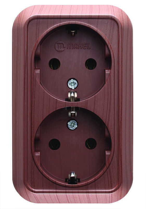 Розетка 2-м ОП 16А IP20 с заземл. орех Makel 45482