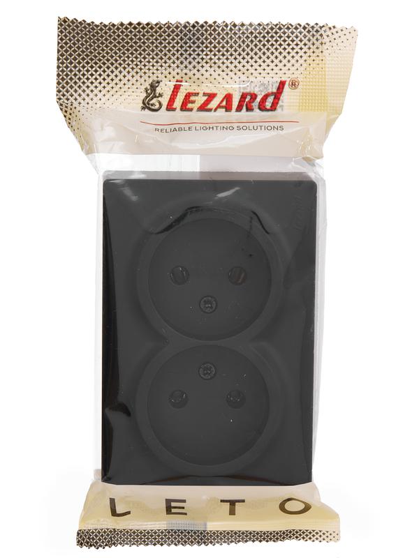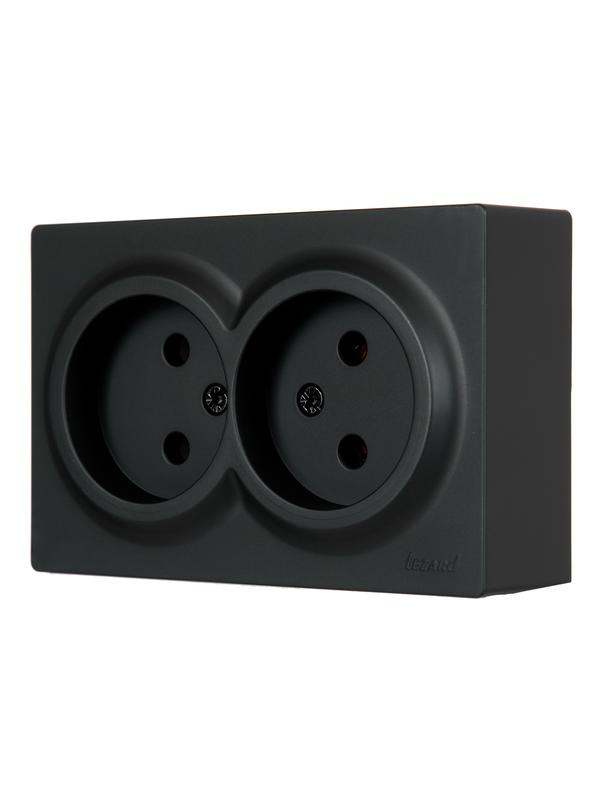 Розетка 2-м ОП LETO без заземл. закрытый корпус ПБТ черн. бархат LEZARD 752-4200-128B