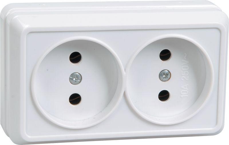 Розетка 2-м ОП Октава 10А IP20 без заземл. бел. GENERICA ERO20-K01-10-DC