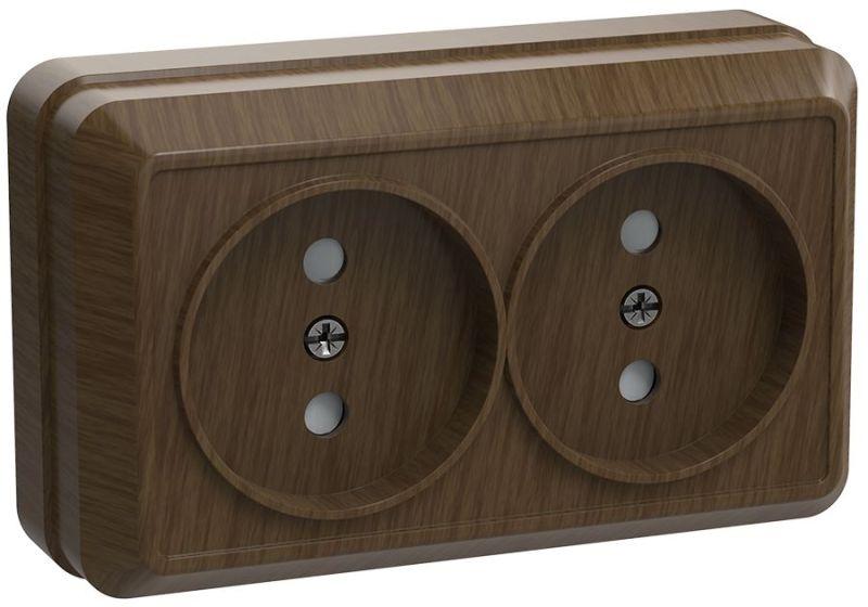 Розетка 2-м ОП Октава 10А IP20 без заземл. дуб GENERICA ERO20-K04-10-DC