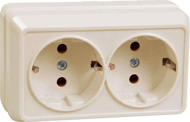 Розетка 2-м ОП Октава РС22-3-ОКм 16А IP20 с заземл. крем. GENERICA ERO21-K33-16-DC