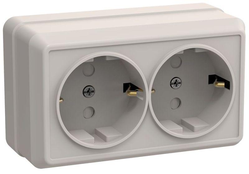 Розетка 2-м ОП Октава РСш22-3-ОКм 16А IP20 с заземл. защ. шторки крем. GENERICA ERO24-K33-16-DC