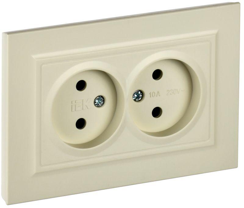 Розетка 2-м СП BRITE РС12-2-БрКр 10А в сборе без заземл. без защ. шторок беж. IEK BR-R20-10-K10-F