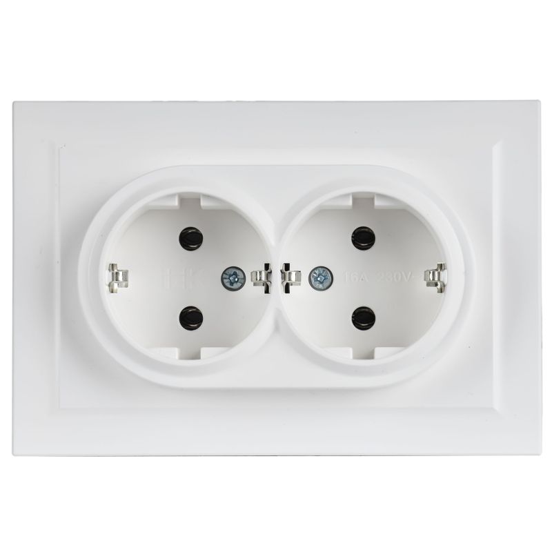 Розетка 2-м СП BRITE РС12-3-БрАБ 16А в сборе с заземл. без защ. шторок арктич. бел. IEK BR-R21-16-K91-F