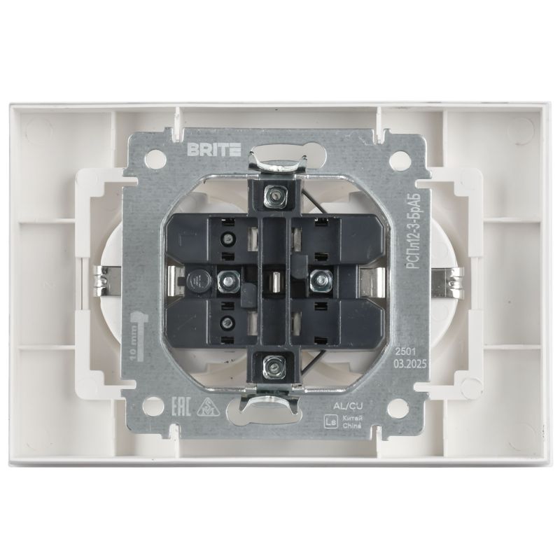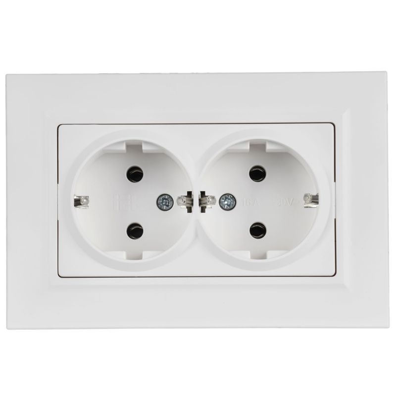 Розетка 2-м СП BRITE РСПл12-3-БрАБ 16А в сборе с заземл. без защ. шторок плоская арктич. бел. IEK BR-R27-16-K91-F