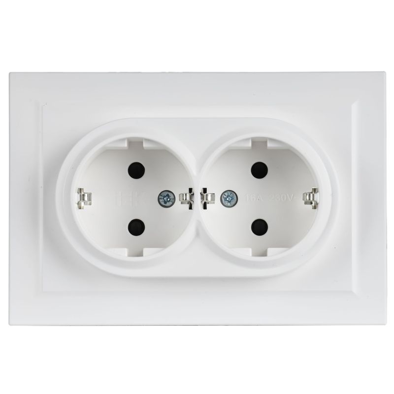Розетка 2-м СП BRITE РСш12-3-БрАБ 16А в сборе с заземл. защ. шторки арктич. бел. IEK BR-R24-16-K91-F
