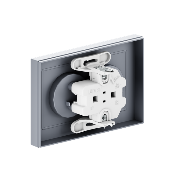 Розетка 2-м СП Эпика 16А без заземл. без защ. шторок с рамкой механизм алюм. EKF UP1-SOA-200