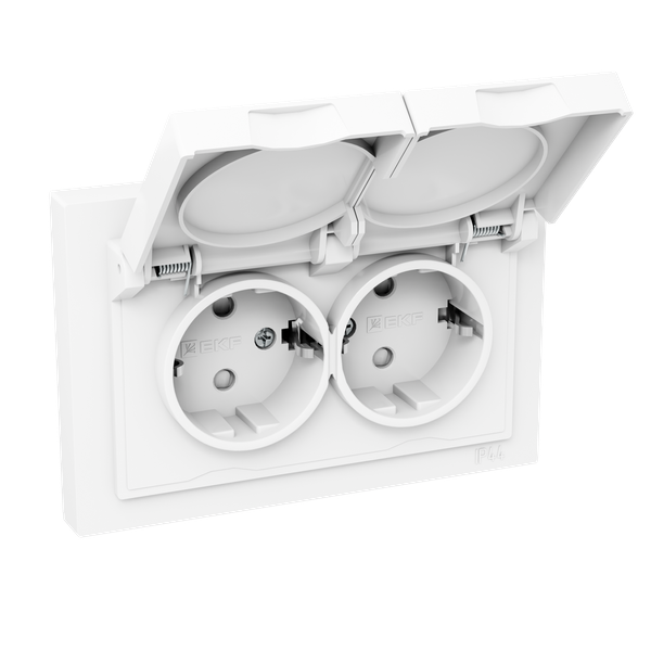Розетка 2-м СП Эпика 16А IP44 с заземл. защ. шторки с рамкой с крышками механизм бел. EKF UP1-SOW-211-44
