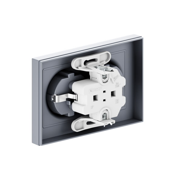 Розетка 2-м СП Эпика 16А с заземл. без защ. шторок с рамкой механизм алюм. EKF UP1-SOA-210