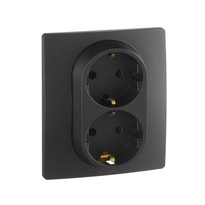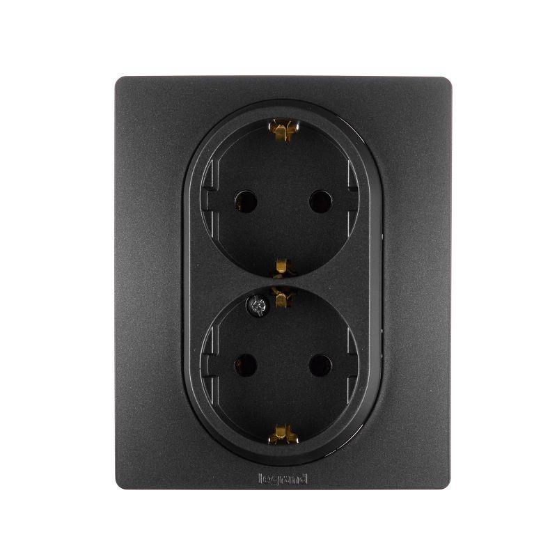 Розетка 2-м СП Etika 16А IP20 250В 2P+E с заземл. немецк. стандарт винт. клеммы в сборе антрацит Leg 672623