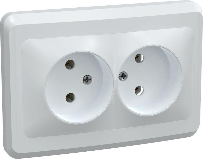 Розетка 2-м СП Вега РС12-2-ВБ без заземл. контакта без защ. штор 10А бел. GENERICA ERV20-K01-10-DM
