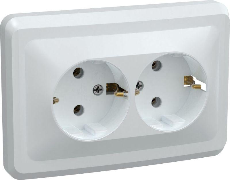 Розетка 2-м СП Вега РС12-3-ВБ с заземл. контактом без защ. шторок 16А бел. GENERICA ERV21-K01-16-DM