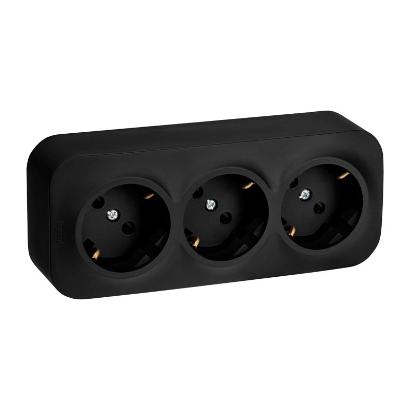 Розетка 3-м ОП Quteo 16А IP20 250В 3х2P+E с заземл. защ. шторки черн. матов. IEK 782473