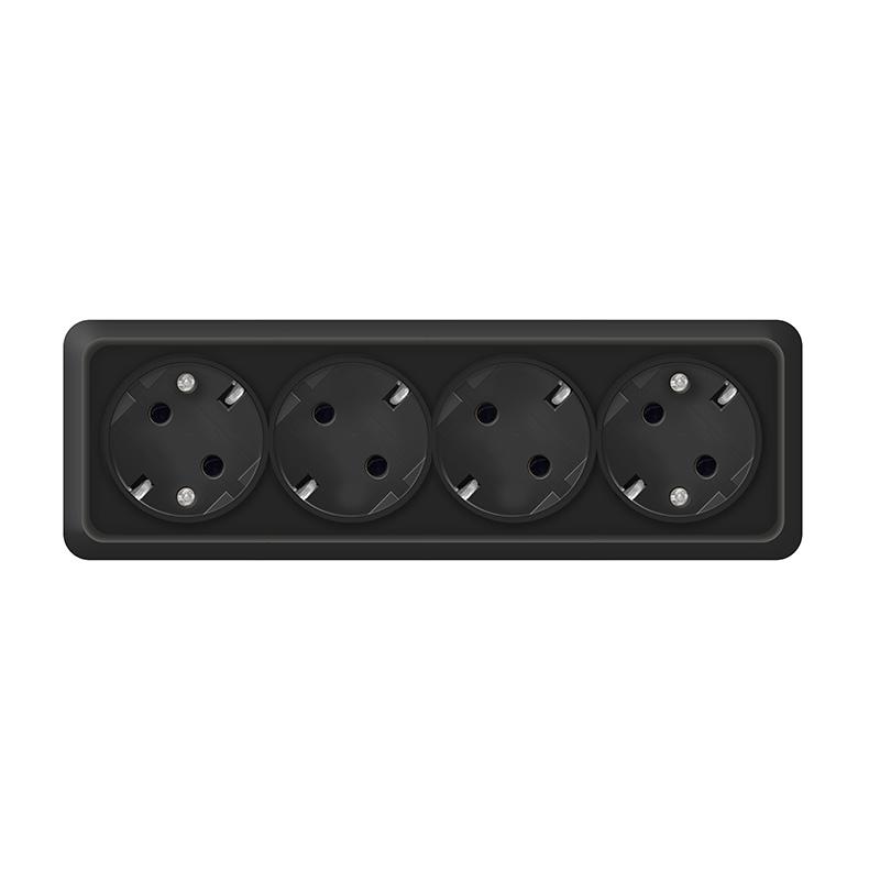 Розетка 4-м ОП Олимп 16А IP20 с заземл. черн. Universal 2221