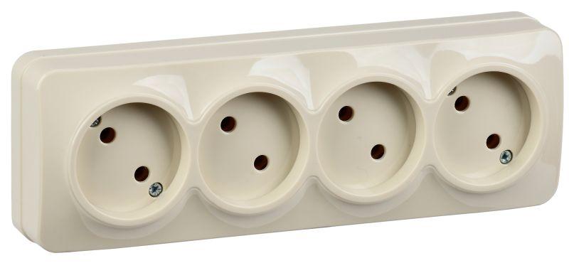 Розетка 4-м ОП GLORY РС24-2-ХК 10А без заземл. крем. IEK ERH40-K33-10