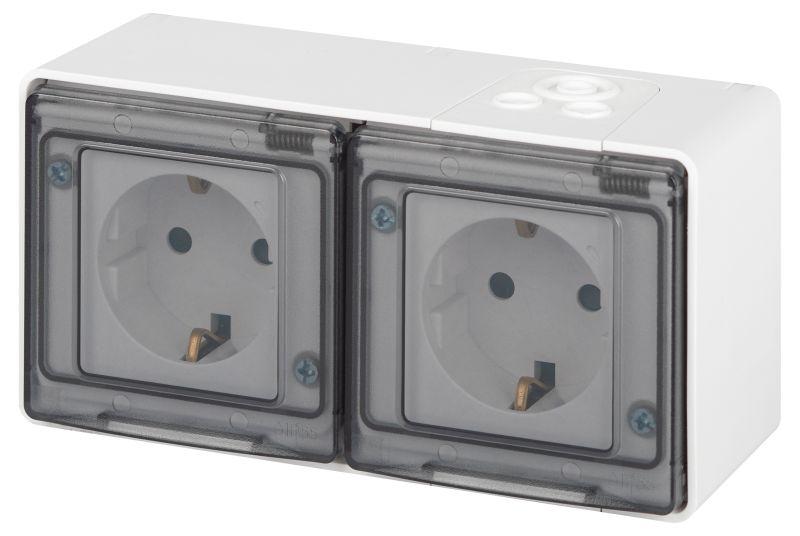 Розетка Эксперт 11-2504-01 2х2P+E гориз. IP55 шторки 16А-250В ОУ бел. Эра Б0063262