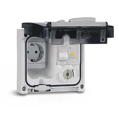 Розетка СП 16А IP66 АВДТ 10мА 3.5кА с вставленной вилкой красн. DKC DIS4093407
