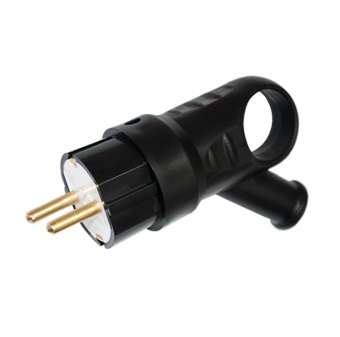 Вилка штепсельная угловая 16А с заземл. с кольцом каучук черн. Bylectrica В16-385