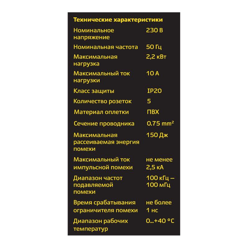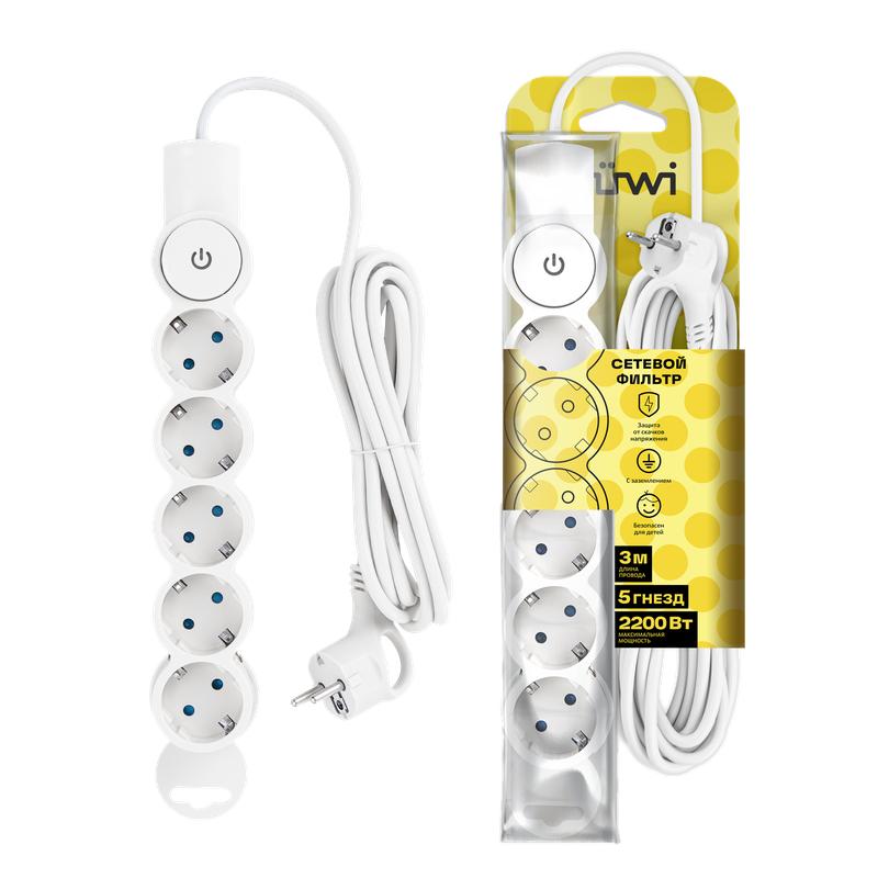 Фильтр сетевой 5х3м с/з со шторками с выкл. 2200Вт 10А бел. Duwi 32576 5