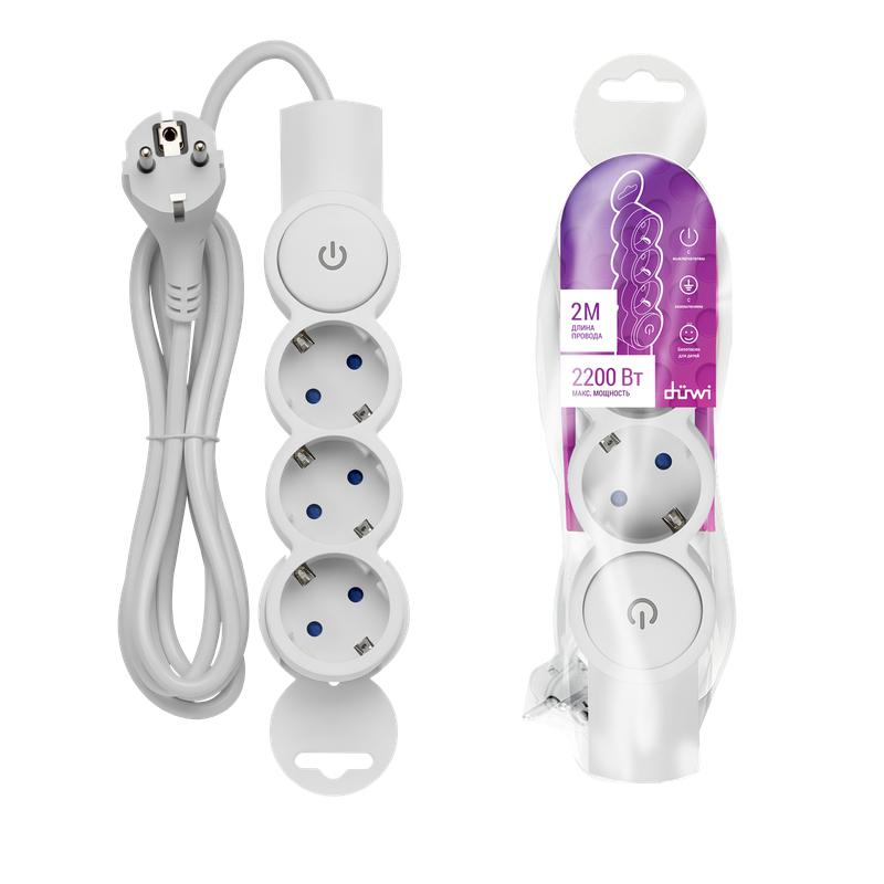 Удлинитель 3х2м с заземл. 10А IP20 ПВС 3х0.75 с выкл. защ. шторки REV 32007 6