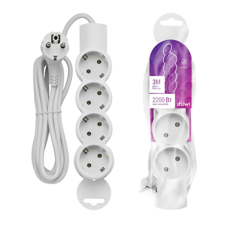 Удлинитель 4х3м с заземл. 10А IP20 ПВС 3х0.75 REV 32012 0