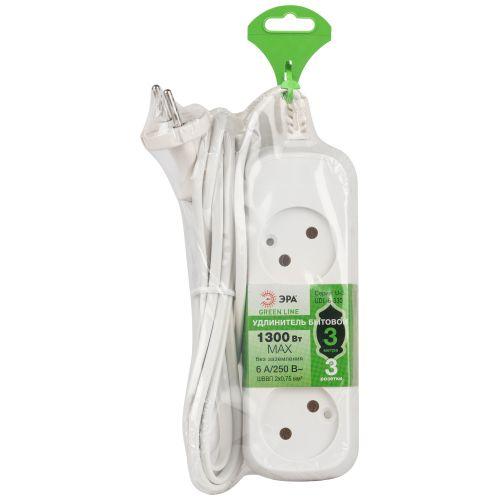 Удлинитель 3х3м без заземл. ШВВП 2х0.75 UDL-6-330 Greenline Эра Б0065041