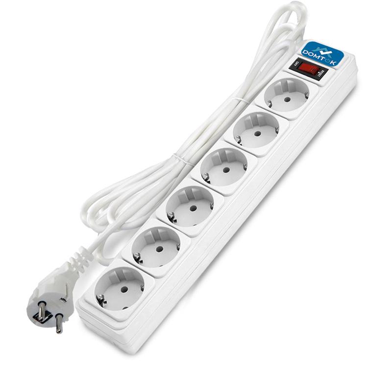 Удлинитель с сетевым фильтром 6х1.8м с заземл 10А IP20 2.2кВт ПВС 3х1 с выкл. бел. DOMTOK 2515