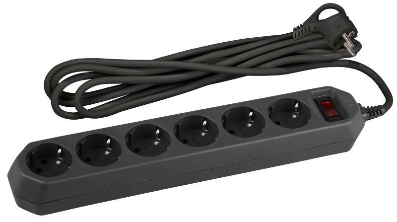 Удлинитель с сетевым фильтром 6х3м с заземл. 10А IP20 USF-6es-3m-B с выкл. с базов. защитой черн. Эра Б0037263