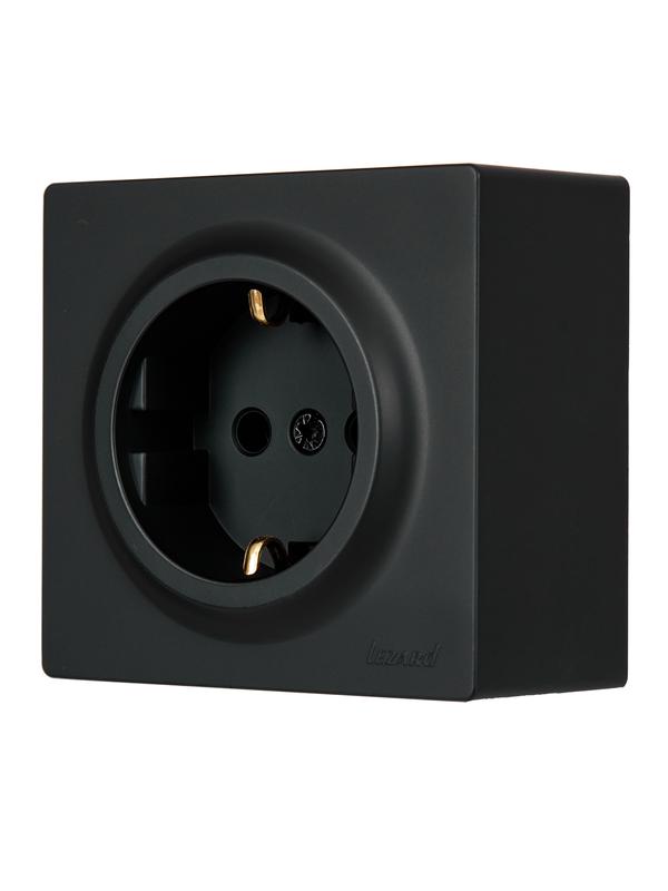 Розетка 1-м ОП LETO с заземл. ПБТ черн. бархат LEZARD 752-4200-122B