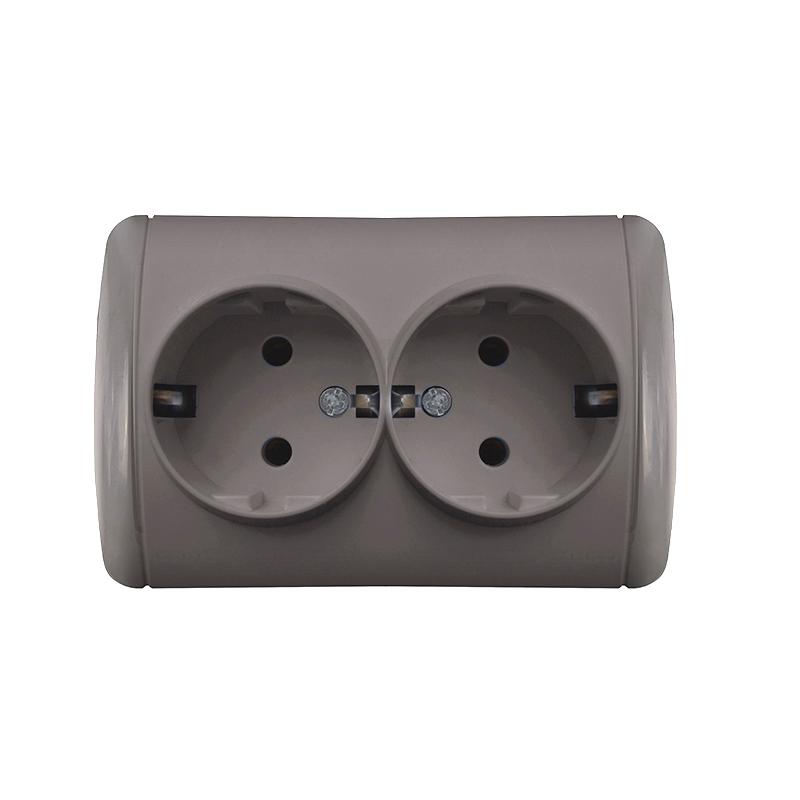 Розетка 2-м ОП Клио 16А IP44 с заземл. сер. UNIVersal К2231-Gr