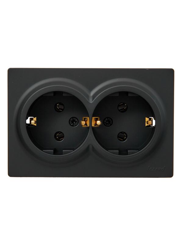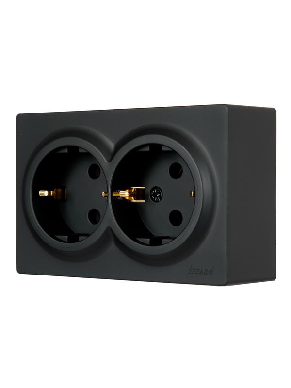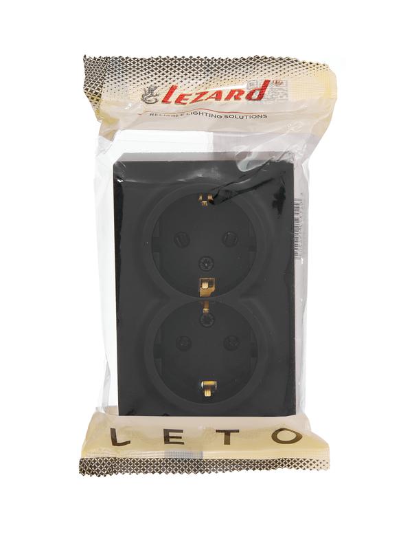 Розетка 2-м ОП LETO с заземл. закрытый корпус ПБТ черн. бархат LEZARD 752-4200-127B