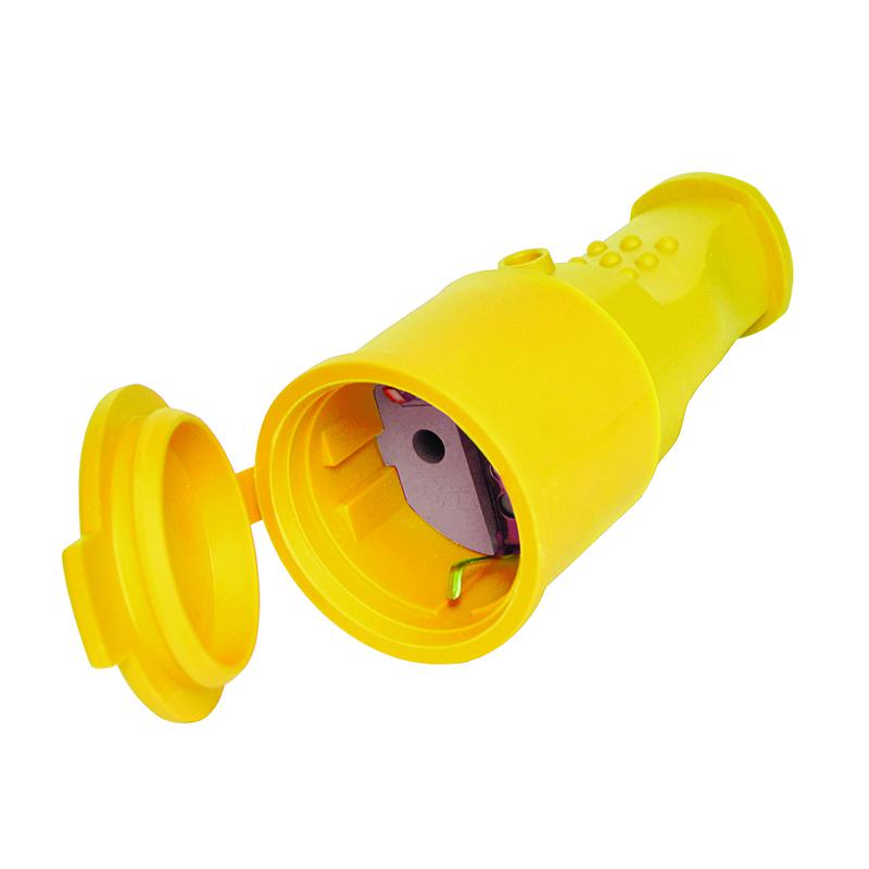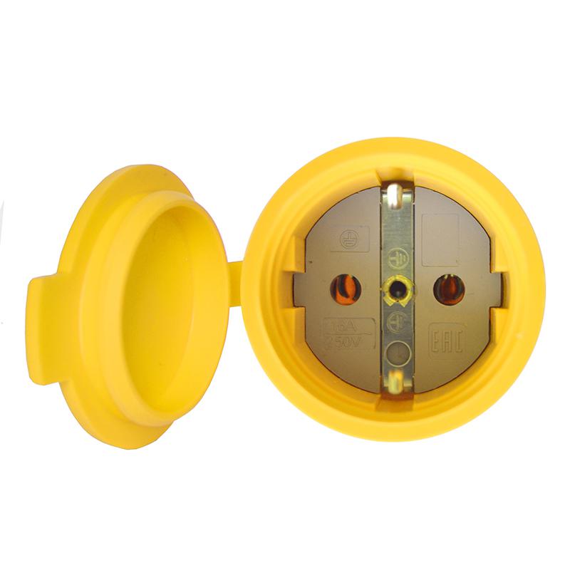 Разъем штепсельный 16А IP44 250В (еврослот) с заземл. каучук желт. Universal 3088