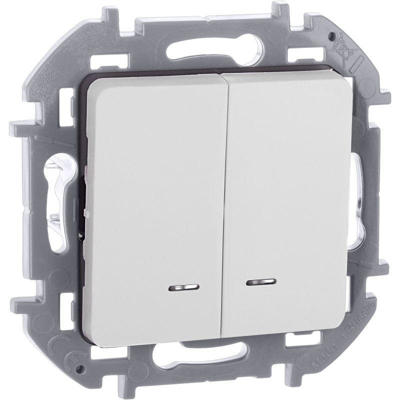 Выключатель 2-кл. Inspiria 10А IP20 250В 10AX с подсветкой/индикацией механизм бел. IEK 673630