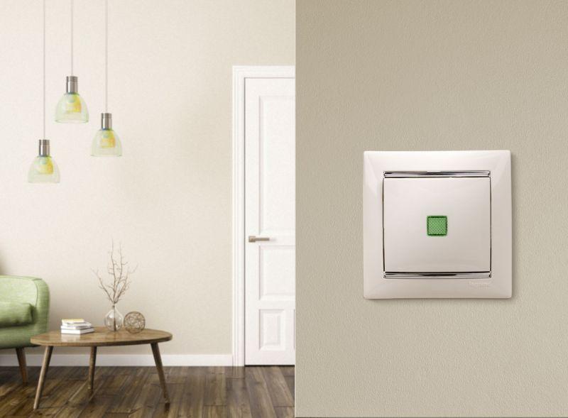 Выключатель 1-кл. СП Valena 10А IP31 250В с зел. индикацией механизм бел. IEK 774410