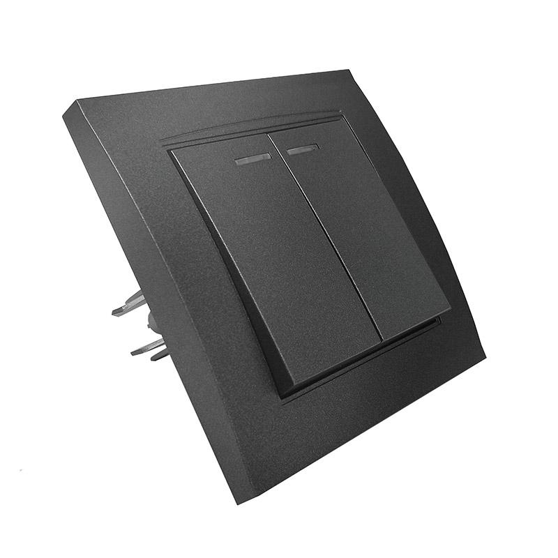 Выключатель 2-кл. СП Бриллиант 10А IP20 с подсветкой в сборе графит Universal 7947410-Gr